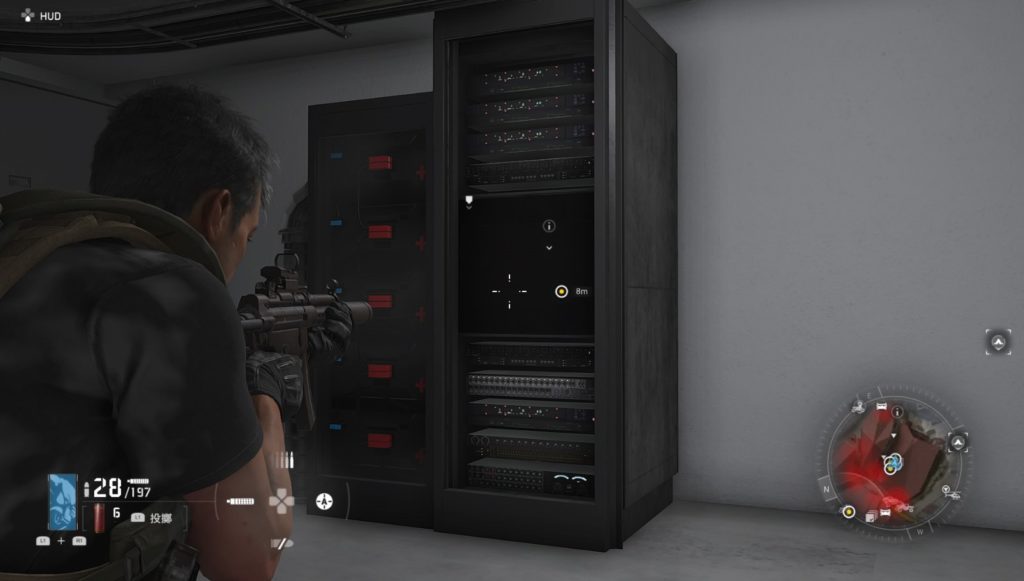 ・建物内の下階にある目的地の部屋(画像「サ」)で研究所のサーバー×4を撃って破壊